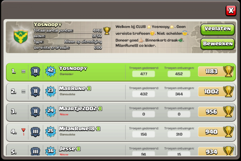 - GEEN Clanverzoeken weigeren. (Laat dit maar aan de Co-Leiders over ;)